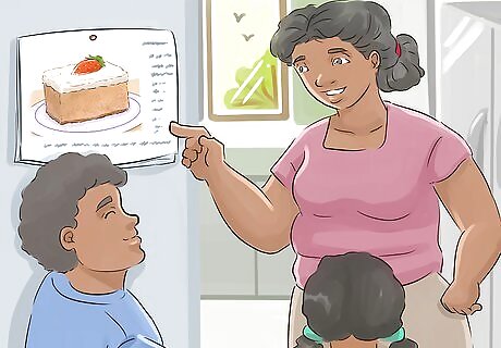 Look at cookbooks with the kids to plan meals for the week. You can invite the kids to browse through cookbooks to get new ideas for cooking for them. Pull out a few cookbooks and set the kids to the task of finding recipes they would like to try. Give younger kids a stack of cookbooks and sticky notes and ask them to place a note on the pages with foods they want to try. Make sure the cookbooks have pictures so they will be able to see the recipes even if they cannot read them yet. For older kids, give them a pen and pencil to write down recipes they would like to make, along with the page number, and any ingredients you will need.