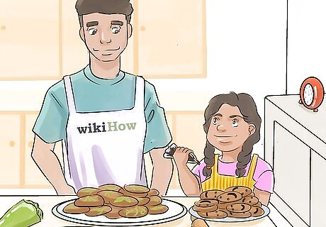 Give kids a break if the recipe will take a while. If you do decide to tackle a more time-intensive recipe, make sure to give the kids breaks from helping you. This will help to ensure that they do not start to associate the kitchen with drudgery. Cooking should feel like a fun activity for kids, not a punishment! For example, if the kids finish their tasks and you do not have anything that they can do for about 30 minutes, let them go play outside or in their room until you need their help again. If you want to keep kids occupied in the kitchen, but do not have a cooking task for them to do at the moment, have them set the table or organize your spice rack.