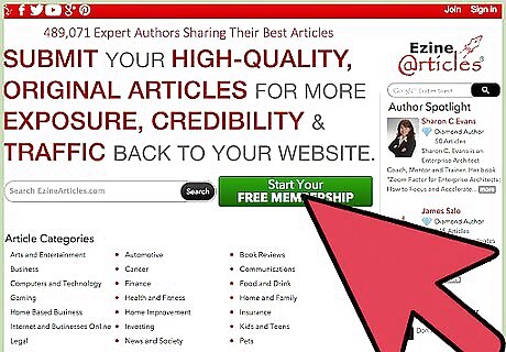 Submit articles based on your subject of expertise. You can submit articles to a variety of websites including Ezine and Squidoo. At the bottom of your article, add a resource box that describes you and links back to your website.