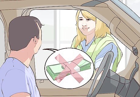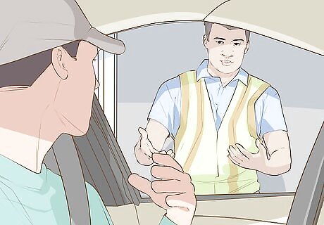 Stay calm and ignore pushy drivers behind you. Once you’re dealing with the official toll booth operator, you are in their hands and have no choice but to wait patiently until the process is completed. Impatient drivers might honk their horns or shout, but you should stay focused and attentive to the toll official. This probably won’t take long, but it all depends on the operator and specific circumstances. The toll booth operator may need to exit the booth in order to record your license plate and ask for your driver's license, but they might instead just make a quick note and wave you through. You might be asked to pull over to a nearby shoulder so that you don’t continue to block traffic. In this case, the operator will walk over to your car once they have filled out the requisite forms.