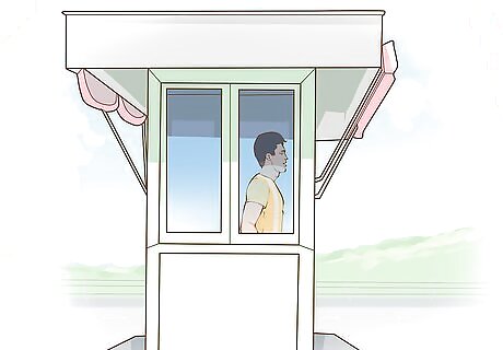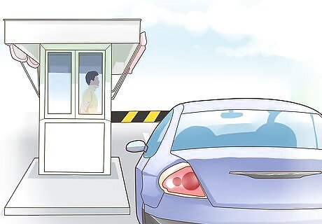 Identify a live representative. Many toll booth zones have several booths, only one or a few of which are inhabited by a live representative. Since you need to speak with someone about your situation, scan the available toll booths and select one where you can see an employee inside. Occasionally—often at night or in isolated areas—you will encounter a toll zone with no live officials at all. In this case, drive through automated toll booth locations and allow the automated system to take a picture of your license plate. The citation/bill will be mailed to you.
