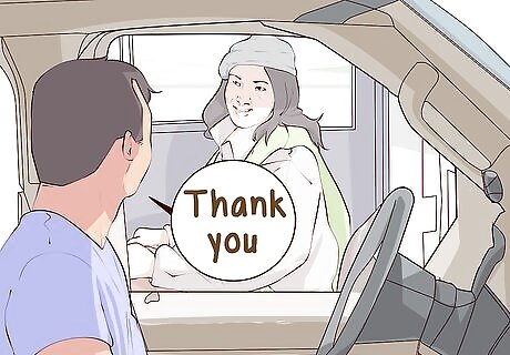 Thank the operator and exit safely. Just as you entered the toll booth zone following normal protocol, you should exit the booth as if you had paid the toll. Observe all posted speed limits and cautions while keeping a careful eye on surrounding drivers.