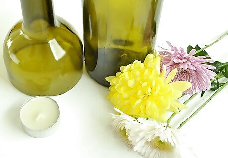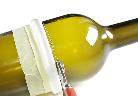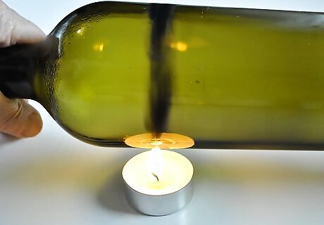Light a candle. Place the wine bottle with the drawn line over the lit candle. Make sure that the fire is pointed up to the drawn line or angle on the bottle, so that the flame only meets the line on the bottle.