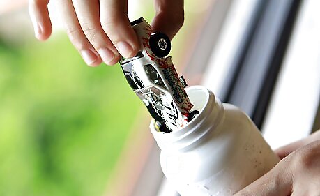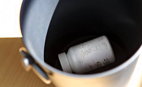 Drop the parts into the bleach and place the lid on securely. Here's where the airtight part comes in. Since most plastic parts float in bleach, shake the container a little to insure the parts are covered.
