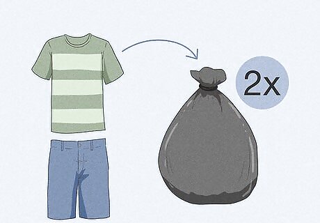 Store contaminated clothes in a double-layered plastic bag. Avoid placing the clothes with your regular laundry since the RCAs could still become airborne and cause more irritation. Place anything you were wearing inside of the garbage bag and tie it tightly. Then place it in another garbage bag for an additional layer of protection. If you were wearing glasses when you were exposed to RCAs, you can wash them with soap and water rather than putting them in the bag. Place anything that touched your clothing in the bag as well since it could be contaminated.Tip: Use tongs or wear rubber gloves to pick up your clothes so you don’t re-contaminate your hands.