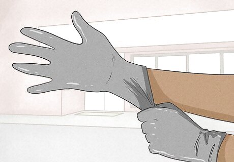 Put on rubber gloves to keep contaminants off your hands. Put the gloves on before any RCAs are dispersed so your hands stay sterile. If you’re exposed to RCAs, you’ll still be able to handle items and clothing without irritating your skin. When it’s time to take the gloves off, pull the first one off from the outside. Then, stick a finger inside the second glove and pull it off so it’s inside-out.