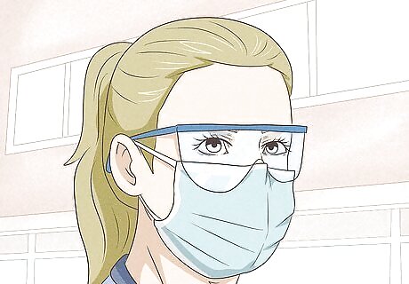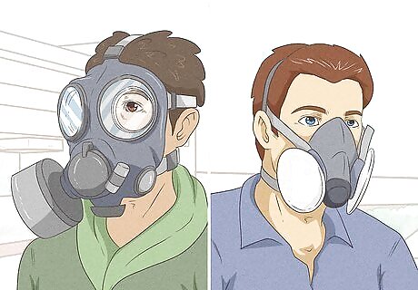 Wear goggles and a face mask for a more affordable option. Get goggles that press firmly against your skin so RCAs don’t reach your eyes. Then, cover your mouth and nose with a face mask, bandana, or handkerchief so you don’t breathe in as many irritants. Face masks can also help limit the spread of COVID-19. Avoid using safety glasses that don’t completely wrap around your eyes since they won’t be effective.