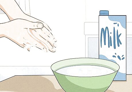 Pour milk on the affected area if you don’t have any other options. Opt for whole milk since it has more fats that help neutralize acids from the RCAs. Pour the milk onto your skin wherever you feel pain or stinging to help flush the RCAs away. Continue rinsing any affected area for the next 2–3 minutes. Rinse the milk off with clean water when you’re finished. Milk is not sterile so it may possibly cause irritation or infection. Take sips of milk and swish it around your mouth to help relieve irritation. Many RCAs use capsaicin, which is the chemical that makes foods spicy, and the fats from milk will neutralize the effect. Be sure to spit the milk out rather than swallowing it.