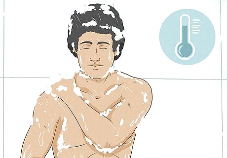 Wash your body with lukewarm water and soap as soon as you can. Get in the shower and rinse off your body to help get rid of any contaminants left from the RCAs. Keep your eyes and mouth closed as you rinse your head so the RCAs don’t run down and cause more irritation. Lather gentle, non-oily body soap on your skin and wash any areas that were exposed to the RCAs. Scrub the areas thoroughly to ensure you remove any oil or dirt that irritants may have gotten stuck in. Avoid soaking in a bath since the contaminates will stay in the water and could cause more irritation. Don’t use any greasy lotions or ointments after your shower since they trap irritants.