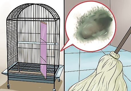 Expect to clean a lot. There is no such thing as a parrot who isn't messy. Parrots can, and will, fling food and they will poop almost everywhere. They'll make a big, big mess! It's really ideal to have the parrot cage on a hardwood or tile floor. Expect to vacuum or mop around the cage daily. You'll also need to wash bowls and toys, and clean the bottom of the cage daily.