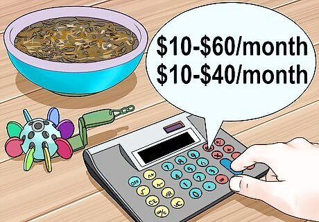 Calculate recurring costs. In addition to costs at startup, you have to consider the cost of a parrot's upkeep. Be prepared to spend regularly on: food. Seeds and fresh food will cost between $10 and $60 a month, depending on the size of the bird. toys. Healthy and happy Parrots love to chew and destroy items. You should buy several toys of every type that are appropriate for your parrot, including acrylic, wood, and rope toys. Replacing toys will cost between $10 and $40 per month. Cardboard boxes and empty toilet rolls also work well. cleaning supplies. A dustpan and brush, reusable rags, as well as carpet cleaner are musts. trips to an avian certified veterinarian. A typical annual checkup will cost between $50 and $75, while a typical exam if the bird is sick or requires medication could cost between $200 and $500. Real emergencies could cost upwards of $1,000. You need to have the financial ability to pay high veterinary bills if the need arises. Avian medicine is more specialized and expensive than medicine for other common domestic pets.