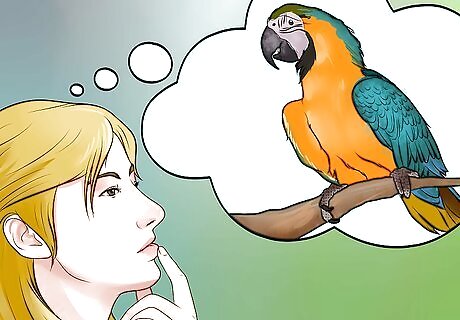 Think about why you want to adopt a parrot. Parrots are complex and misunderstood animals. While parrots are beautiful and some can learn tricks, if you are looking at a parrot because of its appearance, don't waste your money or time. Parrots are intelligent additions to your family and need the right kind of attention, varied activity, and a fresh diet. Caring for a parrot is a lifetime commitment of time and energy every day.