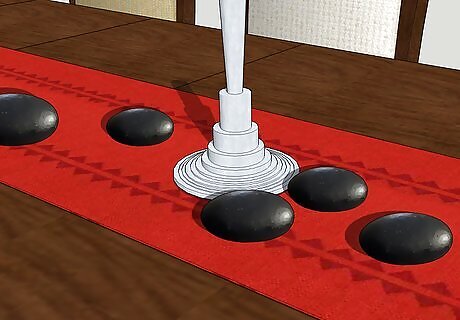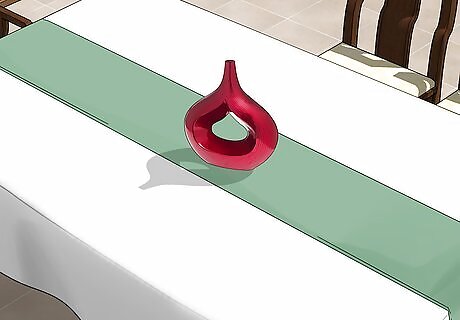 Pick a simple centerpiece and place it in the middle of the table. The centerpiece will help the table look interesting while still keeping it clean and empty. Choose your centerpiece size based on the size of your table, and place it on top of the table runner or table cloth. For a contemporary feel, put a metal or clay sculpture in the middle of the table. The centerpiece shouldn’t be too tall, though! If it is, make sure you can easily move it out of the way when serving dinner or entertaining guests.