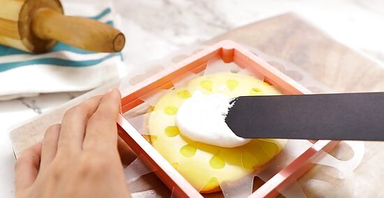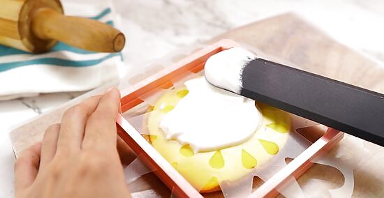 Smooth out the layer of icing several times to get rid of any peaks. Use the length of the offset spatula to smooth over the entire cookie. Go over it several times in different directions to get rid of any peaks or scrape marks, forming a flat layer of icing. Smooth the icing out so it doesn’t stand taller than the stencil, otherwise it’ll form peaks when you take off the stencil.