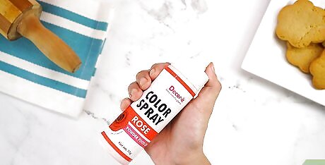 Use a can of color mist food spray to decorate the cookie. Purchase a can of color mist food color spray from a grocery store or online. These cans come in many different colors and cover the stencil in an even layer of spray, leaving behind your desired pattern. Instead of a can of food color spray, you could use an airbrush to apply the food color evenly.