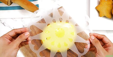 Pick out a stencil that covers the entire cookie. It’s best to use a simple stencil the first time you stencil the cookies so they’re less likely to get messed up. Pick out a stencil without super fine lines and with easy shapes to make filling in the areas easier. Make sure the stencil lies flat on the cookie and covers its entire surface with room to spare on each side. Look for stencils at your local big box store, craft store, or online. Pick out a stencil that's labeled as food-safe.