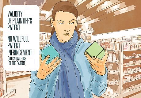 Evaluate possible defenses. Your approach to the lawsuit depends on how the plaintiff alleges that you have infringed their patent. You have different defenses potentially available if the plaintiff claims you directly infringed their patent than you would if the plaintiff alleges your infringement was indirect. Generally, you can argue that the plaintiff has not proven that you've infringed their patent, or you can challenge the validity of their patent (or specific claims within the patent). You have additional defenses if the plaintiff claims you willfully infringed their patent, because to prove that they must prove that you had knowledge of their patent and infringed it anyway. Your attorney will advise you on the best angle to take. Keep in mind that the stronger your arguments, the better chance you have of settling the case for an amount much lower than the amount the plaintiff demanded as damages in their lawsuit.