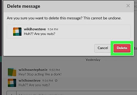 Click Delete. This is a red button on the lower-right corner of the confirmation pop-up. It will delete the selected message from the conversation. You cannot restore deleted messages in a chat.