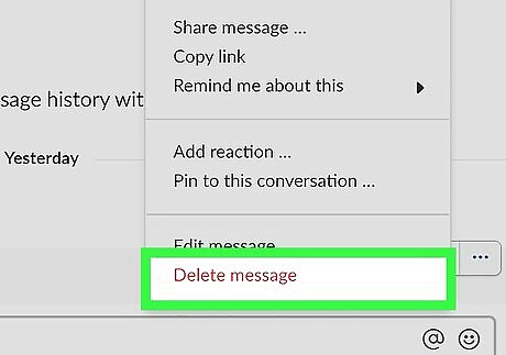 Find and hover over the message you want to delete in the conversation. Hovering over a message will reveal toolbar icons next to the message on the right-hand side. You can scroll up the conversation to see older messages.