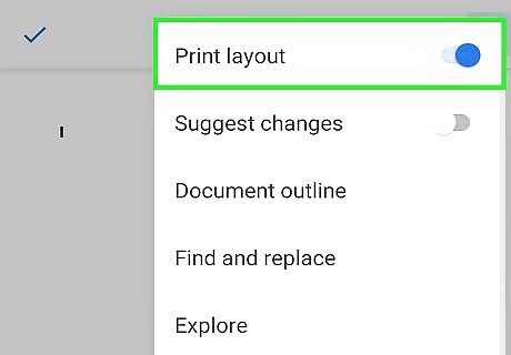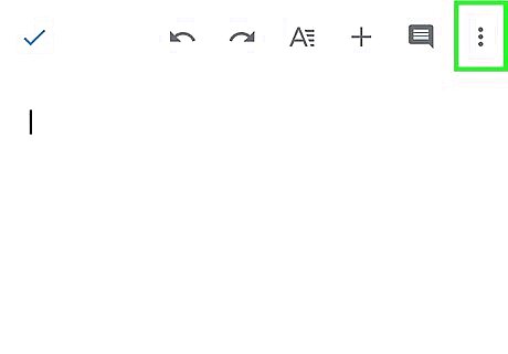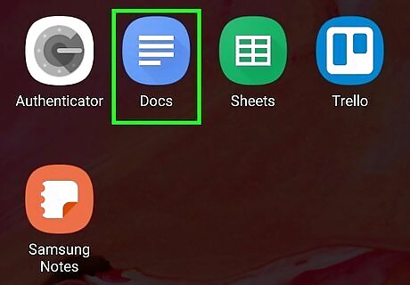 Open your document in Google Docs. This app icon looks like a blue piece of paper with white lines on it that you'll find on one of your Home screens, in the app drawer, or by searching. When you open Google Docs, you can tap your document from the list or tap the plus icon (+) to create a new document.