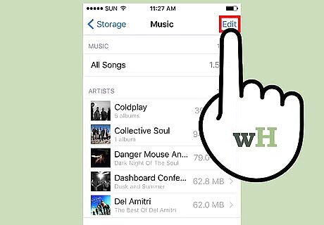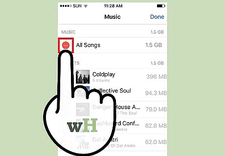 Delete all of your music. If you want to clear all of the music on your device, tap the "-" next to "All Songs" and then tap the "Delete" button that appears. If you don't want to delete all of your music, see the next step.