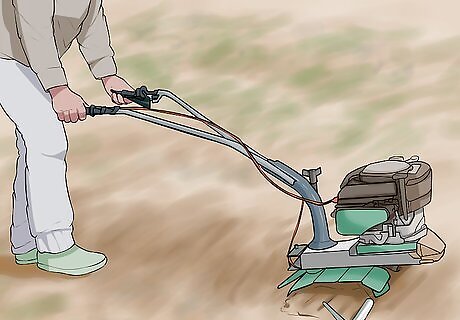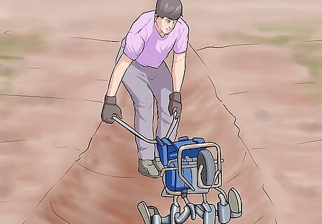 Plow the yard. In order to turn the earth over so as to ready it for desert plants, you’ll need to obtain a tractor or hand plow. For most mechanical tractors, you can use a front scoop or a rear blade to turn your future garden land over. Usually, the rear blade is the easier option when plowing your land. With a small plot, you could probably use a rototiller or similar handheld plowing device. Consult manufacturer directions for more information about how to use your mechanical tractor or plowing device. You can often rent small tractors from home and garden stores.