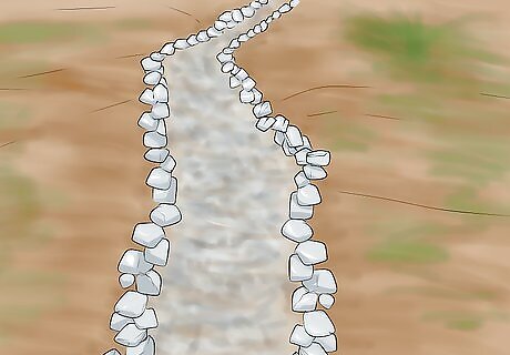 Line your dry streambed. After digging the dry streambed, you’ll need to lay rocks about the size of a fist along the wash. Place them tightly together along the bottom. You can obtain these rocks from rock and gravel companies in your area. There’s no need to add water to the dry streambed. The dry streambed’s purpose is to secure the soil, direct precipitation during the rainy season, and beautify your desert garden.
