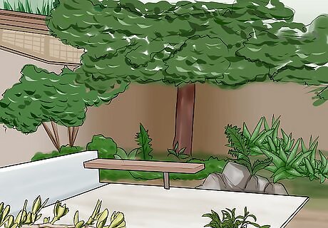 Install a patio. When your trees start to grow significantly, you might want to add a patio beneath them. A patio beneath a tree is the best option because the tree’s branches provide excellent shade from the desert sun. Do not place a patio beneath trees that drop fruit or attract birds.