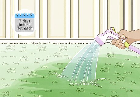 Chose the proper time to remove thatch. This should be in the spring or fall when there is adequate moisture in the soil. Water the lawn lightly 2 days before de-thatching. Trying to de-thatch a lawn that is too wet or too dry will damage the soil.