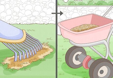 Make 2 perpendicular passes over the entire area with the core aerating machine or vertical mower. For example, power rake the entire lawn running north to south. Do the next pass east to west. This will thoroughly break up the thatch on the lawn.