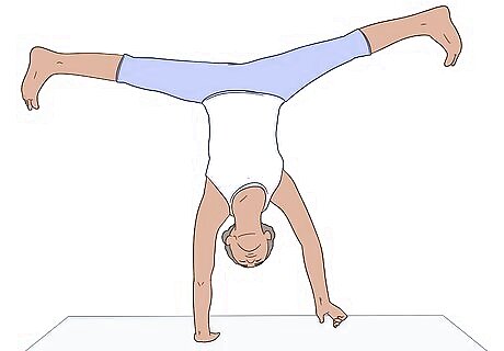Pick a spot with soft flooring or grass because you might fall. It’s easy to fall out of a one-armed handstand, especially when you first start doing them. To help you avoid injury, practice your handstands on a soft floor like carpet or an area of the ground that's covered in grass. You can still get injured if you fall, but softer flooring can minimize your risk of getting hurt. Use a gymnastics mat to protect you in case of a fall. EXPERT TIP Halle Payne Halle Payne Former Level 7 Gymnast Halle Payne began gymnastics at the age of 9 at Buckhead Gymnastics in Atlanta, GA. She began in a Prep-Optional team, then switched over into the Compulsory Junior Olympic Level System at the age of 11. She finished her gymnastics career as a Level 7. Halle Payne Halle Payne Former Level 7 Gymnast Try practicing on a low balance beam. A balance beam makes this trick a bit easier, because the hand that remains down can grip the beam, helping you keep your balance. Choose a beam that's low or directly on the ground for an easy fall. Surround it with padded mats for extra protection if you'd like!