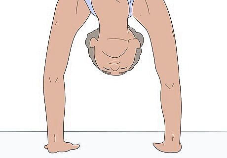 Lower your legs toward the floor to come out of your handstand. When you’re ready to come down, hinge at your waist to drop your legs down toward the ground. Go as slowly as you can so that you can control your fall. Land softly on your feet, then stand up.