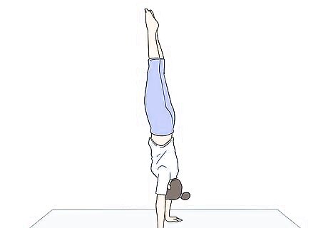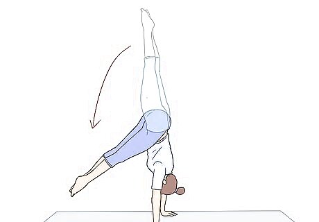 Kick off the floor into a handstand using your non-dominant leg. Push through your non-dominant foot to propel your legs off the floor. Lift your non-dominant leg off the floor first, then bring up your dominant leg in a swift motion.