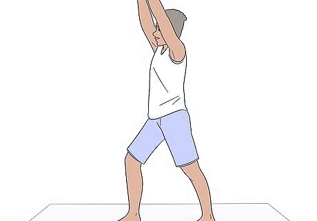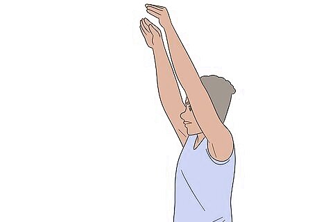 Stand up straight with your arms extended over your head. Stand tall with your legs about hip-width apart and your spine straight. Lift your arms up over your head with your palms facing forward. As you complete the exercise, try to keep your body as straight as possible. Engage all of your muscles to support your frame.