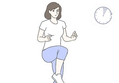 Warm up with 5 minutes of cardio activity. Before you stretch, warm up your whole body with cardio exercise. Choose an exercise that you enjoy. For instance, do 5 minutes of jumping jacks, walking, jogging, dancing, or aerobics to get your blood pumping. If you do static stretches with cold muscles, it actually increases your risk of injury. Always do a few minutes of cardio first.