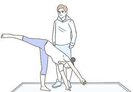 Ask someone to be your spotter. You may fall several times before you master a one-armed handstand. To help you avoid injury, ask a friend or coach to help you. They can provide support and catch you if you fall.