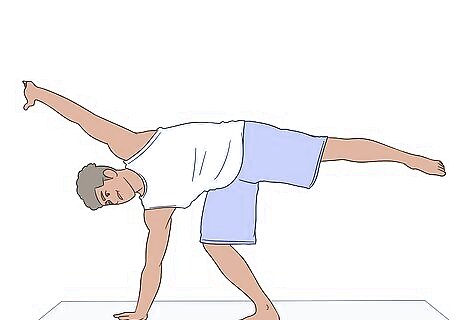 Tighten your core to help you maintain your stability. Your core muscles must stay engaged for you to stay balanced. Squeeze your core tightly to create a strong trunk. If you slacken your muscles, you’ll probably fall over.