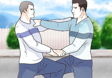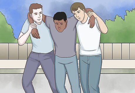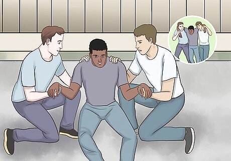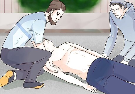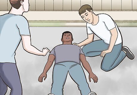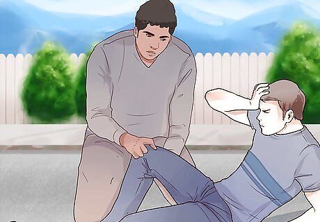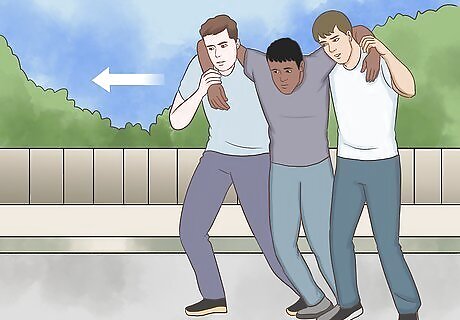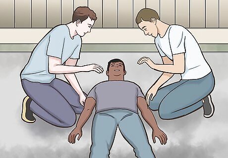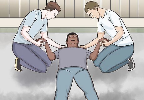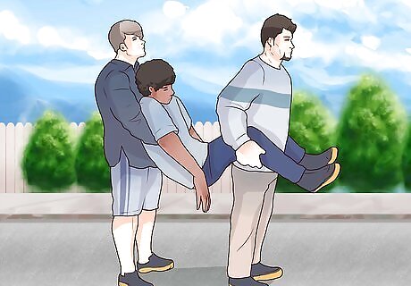 Help the person stand if they are conscious. While holding onto the injured person’s wrists and shoulders, work with your partner to pull them into a sitting position. From there, help them stand up. If the person is unconscious, sit them up, but don’t pull them into a standing position yet.
