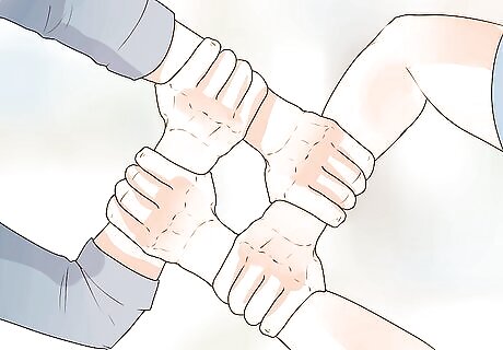 Grab the injured person’s wrist and shoulder. With the hand that’s closest to the person’s feet, grab hold of their wrist. Use your other hand to grab onto their shirt at the shoulder. Have your partner on the opposite side do the same thing. If you can’t grab onto their clothing at the shoulder, place a hand behind their shoulder or grab them under the arm.
