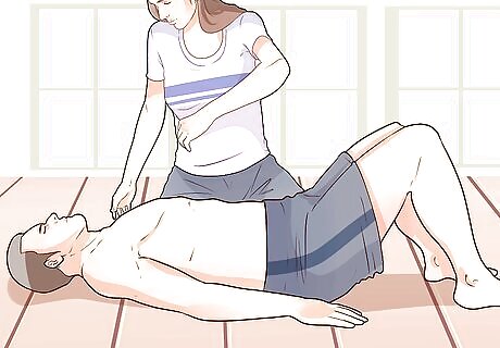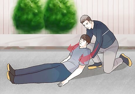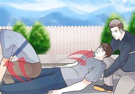 Start with the injured person lying on their back. This simple carry is easiest if the person is lying on the ground, flat on their back. If they aren’t already in this position, roll them onto their back if you can do so safely. This carry is easiest if the person you’re rescuing is conscious, but you can also do it with an unconscious person if you need to quickly and easily drag them out of harm’s way.