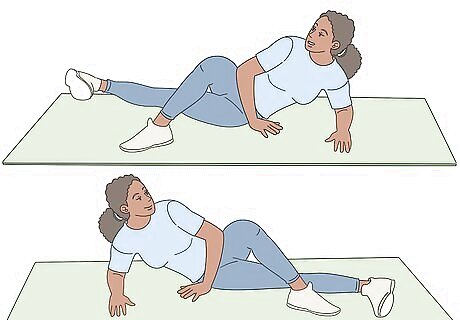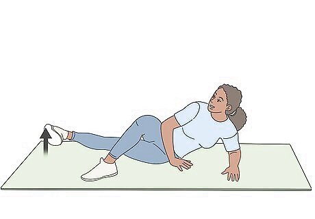Repeat the exercise 15-20 times with your left leg, then switch. Since this exercise uses small movements and minimal resistance, doing more reps will help you to build strength and tone your muscles. After you finish your reps on your left leg, turn onto your right side and repeat the exercise with your right leg. This will complete 1 set. Do a total of 3-4 sets of this exercise.