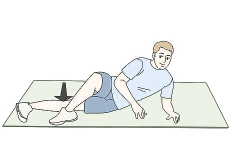 Use an exercise mat to make this exercise more comfortable. If you don’t have an exercise mat, you can lie down on a carpeted area, fold a blanket in half, or stack 2 to 3 open towels on the ground instead. This will help to provide some padding between your body and the floor, which will help to make you more comfortable during the exercise. Avoid doing this exercise on a hard floor without any padding. Lying directly on a hard floor will be very uncomfortable and possibly even painful. You can also do inner thigh lifts while lying down on a sofa or bed if you prefer. Just make sure the bed or sofa isn’t too squishy or bouncy or you might not have enough stability to do the exercise.