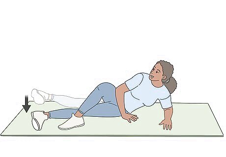 Lie down on your side with your legs out straight. Position yourself with your left hip on the ground and your legs stacked on top of each other. Ensure that your legs are extending out straight from your hip just like they would be if you were standing up. Flex your feet and stack your ankles as well. If this position feels uncomfortable, try relaxing your knees and hips slightly. It’s okay if you have a slight bend in them. Just make sure they are mostly straight.