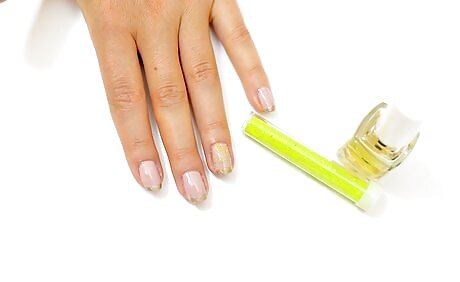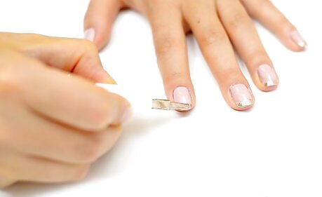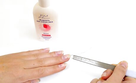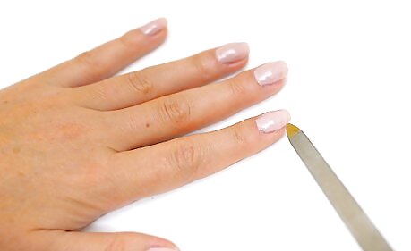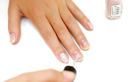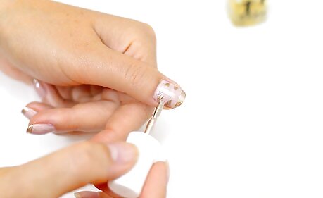 Remove nail polish and clean your nails. If you are wearing nail polish, make sure you first remove it completely. Take a cotton ball or pad and apply a small amount of nail polish remover. Press the pad onto your nail for a few seconds, then wipe off the polish until it is complete gone. Make sure to clean under your nails, as well. Try using a nail file or manicure tip to remove excess dirt. Wash your hands thoroughly when you are done.