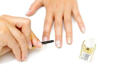 Try some sequins or jewels. A small pack of nail beads, jewels, or sequins only cost around five to six dollars on Amazon and last a long time. Simply apply the jewels or sequins with tweezers and nail glue. You can also attempt to place them while the polish is still wet. Try putting a jewel in the center of your nail where the line for your base coat ends and the stripe across your tip begins. You can also add sequins to the base of your nail. For example, gold and silver sequins or diamond jewels would be a great contrast to the metallic tips on your nails.