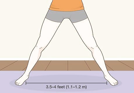 Spread your feet. From here, step your feet out so there is about 3.5–4 feet (1.1–1.2 m) of distance between them.