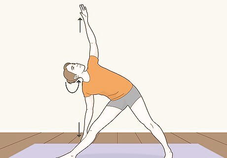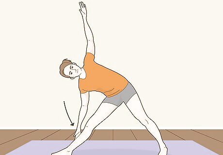 Start off slow. It can take awhile to get the body movements behind triangle pose right. Do not stretch or bend too much too soon. You may be unable to do some aspects of triangle pose, such as turning your head or stretching your arm, until you've practiced for awhile. Be patient and give your body the time it needs to adjust.