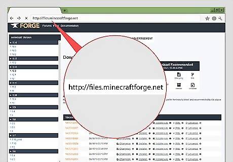 Go to https://files.minecraftforge.net in a web browser. This is the webpage for Minecraft Forge. This software makes it easy to install mods for Minecraft.
