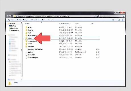 Click the "mods" folder. It's in the Minecraft application folder. If you do not have a Mods folder, right-click a blank spot and click New and click New Folder. Name the new folder "mods" with a lower-case "m".