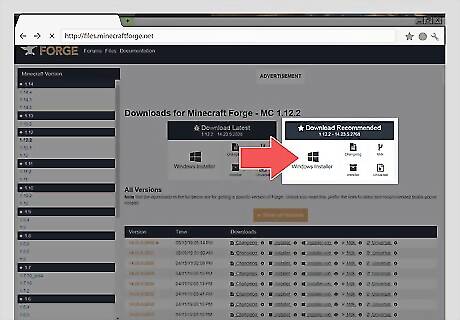 Click Install below "Recommended". It's the box on the right. This will install a ".jar" file that can be used to install the Minecraft Forge on PC or Mac.